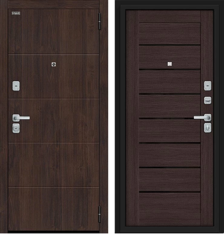 Надежная входная Дверь Браво Прайм/BChrome Almon/Wenge Melinga премиум класса по цене 40 401 руб. Большая толщина стали защитит от проникновения в ваш дом, квартиру или коттедж. Используется очень качественная фурнитура: замки, цилиндры, ручки, защелки. Покрытие и отделка двери изготовлено под внимательным контролем производителя. Дверь имеет долгий срок службы и гарантию.